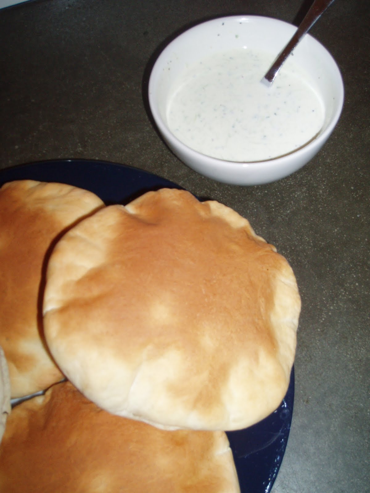 Ook pita-broodjes zijn niet moeilijk om zelf te maken. Ze zijn ook veel lekkerder en luchtiger dan de broodjes uit de supermarkt. En ze vullen beter! Alleen maar voordelen dus :-) En nu aan de slag! Je kunt ze vullen met allerlei lekkers. Ik kies meestal voor biologisch shoarmavlees, en allerlei fijngesneden groenten zoals prei, ui, paprika, courgette en wortel (je kunt ook een zak kant en klaar gesneden groente nemen). Het vlees bak ik samen met de groenten (min. 200 gr. p.p.) en daarmee vul ik de broodjes. Heerlijk met de knoflook-komkommersaus!