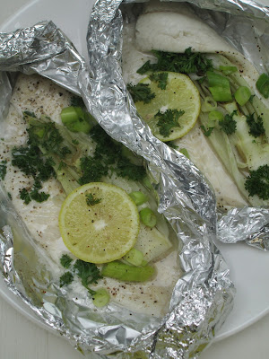 Was de scholletjes en dep ze droog. Leg ze op folie of bakpapier. Snijd de venkel en citroen in plakken. Leg per pakketje een plak venkel en een schijfje citroen op de vis. Snijd de bosui in ringetjes en strooi over de vis. Voeg verse kruiden toe naar smaak. Bijvoorbeeld dille combineert goed met vis, maar ook peterselie en bieslook. Besprenkel op het laatst nog met wat olijfolie en bestrooi met zout en peper. Vouw het pakketje goed dicht zodat het vocht niet kan ontsnappen. Plaats de vis op de bbq of in een voorverwarmde oven. De vis is gaar na 10 á 15 minuten.