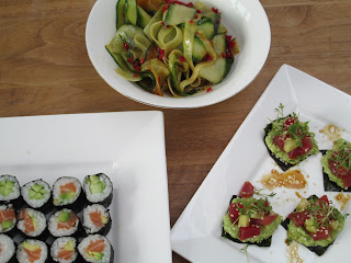 Het tweede gerechtje van het Sushi-menu! Deze komkommersalade heb ik van Jamie Olivers 30 minuten meals en smaakt heerlijk bij sushi (Jamie serveert 'm bij een curry).