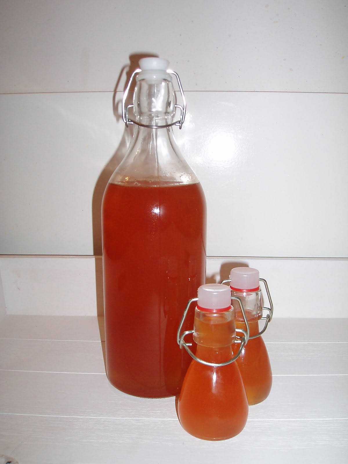 Misschien schrik je van de enorme hoeveelheid suiker, dat doe ik ook, maar je hebt het nodig anders gaat je sap bederven. Je kunt minder suiker gebruiken, dan moet je citroenzuur toevoegen, maar dan nog heb je op een liter sap 1250 gram suiker nodig en 25 gram citroenzuur. Ik gebruik dan liever helemaal suiker ook omdat je de siroop verdunt met heel veel water. In verhouding valt de hoeveelheid suiker dan mee. Je doet echt een heel klein scheutje in een glas en vult de rest aan met water.