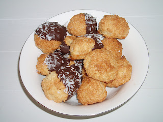 Je kunt ze zo opeten, maar je kunt ze ook nog in gesmolten chocolade dopen (voor de helft bijvoorbeeld) en bestrooien met extra kokos.