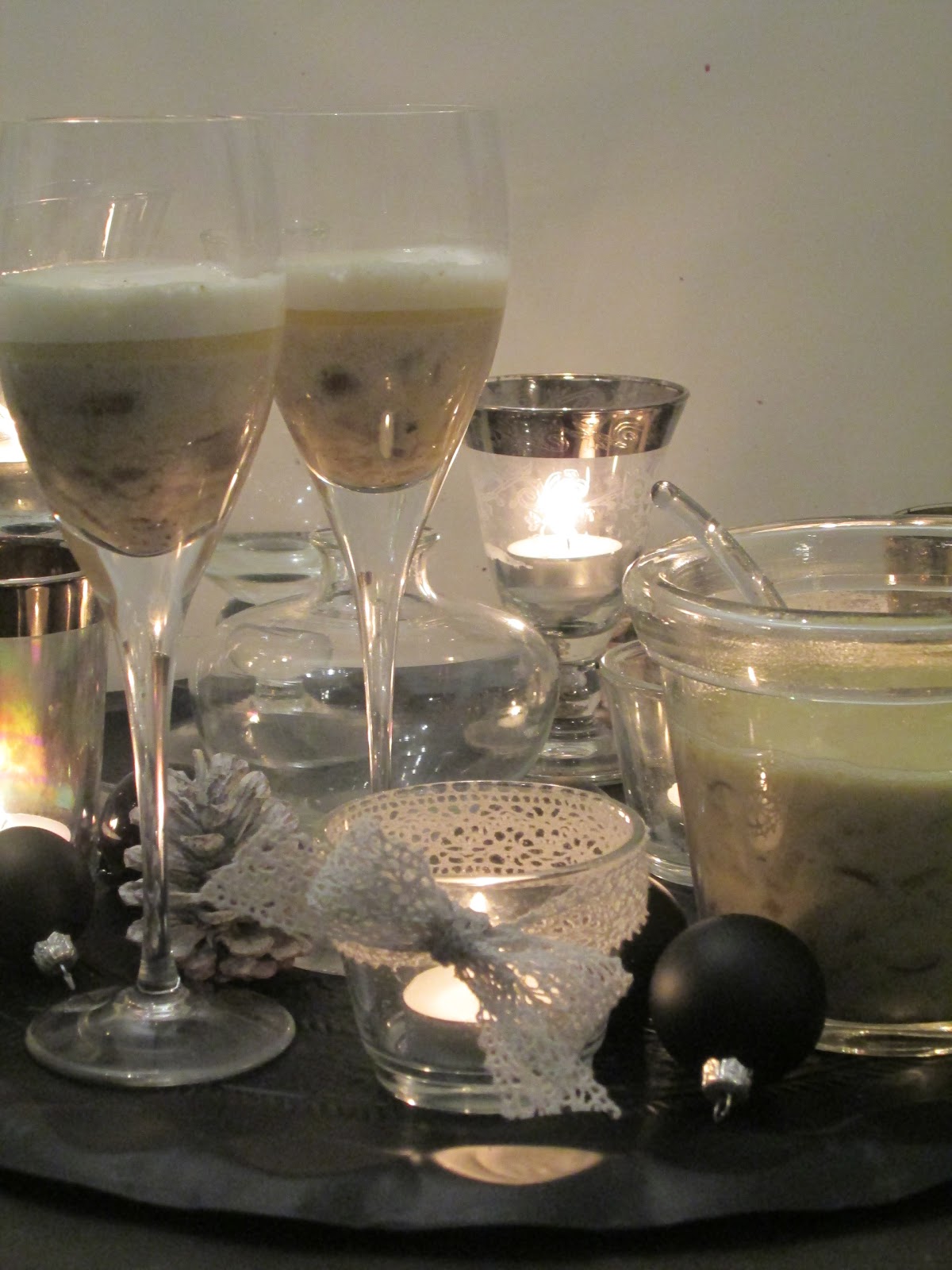 Schep de soep in glaasjes en schep hierop voorzichtig wat van de madeiraroom. Evt. wat versgemalen peper als garnering. Serveer direct.