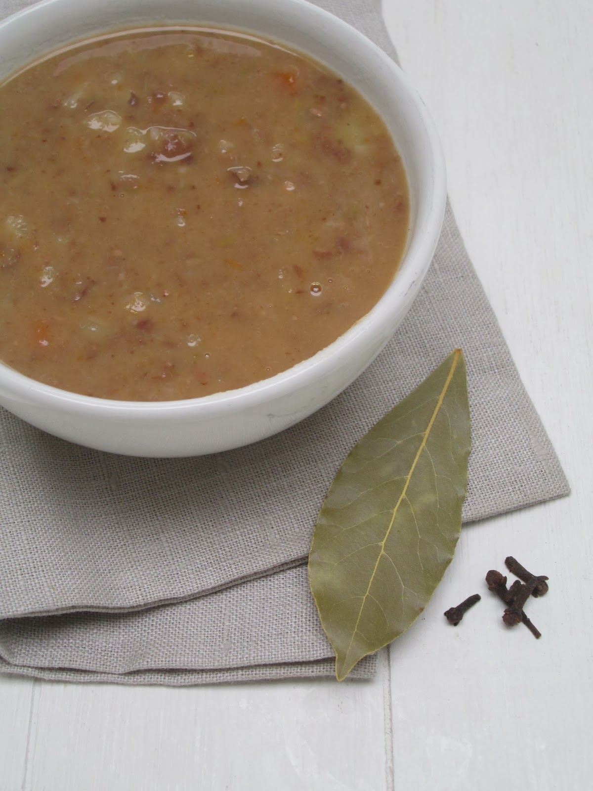 *Als je vlees wilt toevoegen kun je een schenkel of soepvlees toevoegen bij het fruiten van de uien en dit later verwijderen en evt. fijnsnijden.