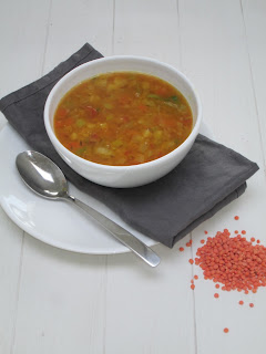 Ik was al langer op zoek naar een lekkere linzensoep. Linzen zijn erg gezond, maar ik vond de recepten die ik tot nog toe had gemaakt niet echt lekker. Nu kwam ik deze tegen en gaf het nog één kans. Deze soep wordt gemaakt met kruiden die ook veel worden gebruikt in de Indiase keuken. De soep is makkelijk te maken, en heeft niet veel tijd nodig, zoals bij bijvoorbeeld erwtensoep. De soep is een lekkere gevulde soep. Het kan nog net, voordat de lente begint. Het recept heb ik uit de Uitzicht, een tijdschrift van de Moermanvereniging. Ik heb het wel een klein beetje aangepast in hoeveelheden van kruiden.